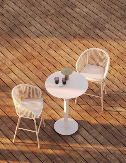 Brand - Sundecor Outdoor Furniture Product Code - (SD-BR-BS0031) Materials - (Powder Coating Aluminum, Braid & Rope, Cord, Acrylic Dyed Fabric)Outdoor Braid & Rope Bar Set-(SD-BR-BS0032)