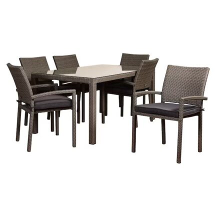 Outdoor Wicker Dining Set (6 Chairs + 1 Dining Table) with Aluminum frame with Seat and Back Cushion per Seat.