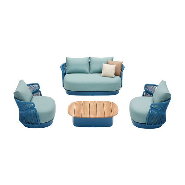 Braid & Rope Outdoor Sofa Set (1 pcs three seater sofa+ 2 pcs Single Seater sofa+1 Center Table) with Powder coated aluminum frame with Seat and back Cushion per seat.