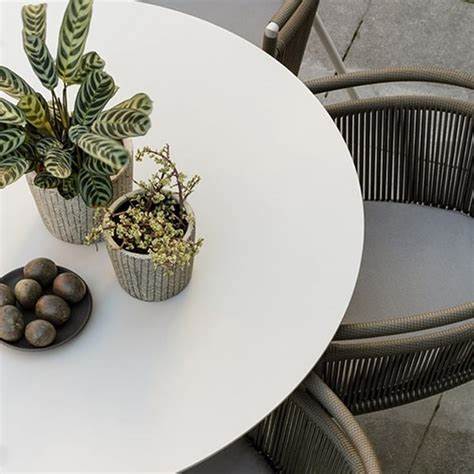 Crafted from durable aluminum frames and elegantly wrapped in weather-resistant synthetic rope and braid, our center table and side tables exude timeless elegance while standing up to the elements. Whether nestled amidst a lush garden oasis or gracing the terrace of a modern patio, these tables add a touch of refinement and charm to any outdoor environment.
